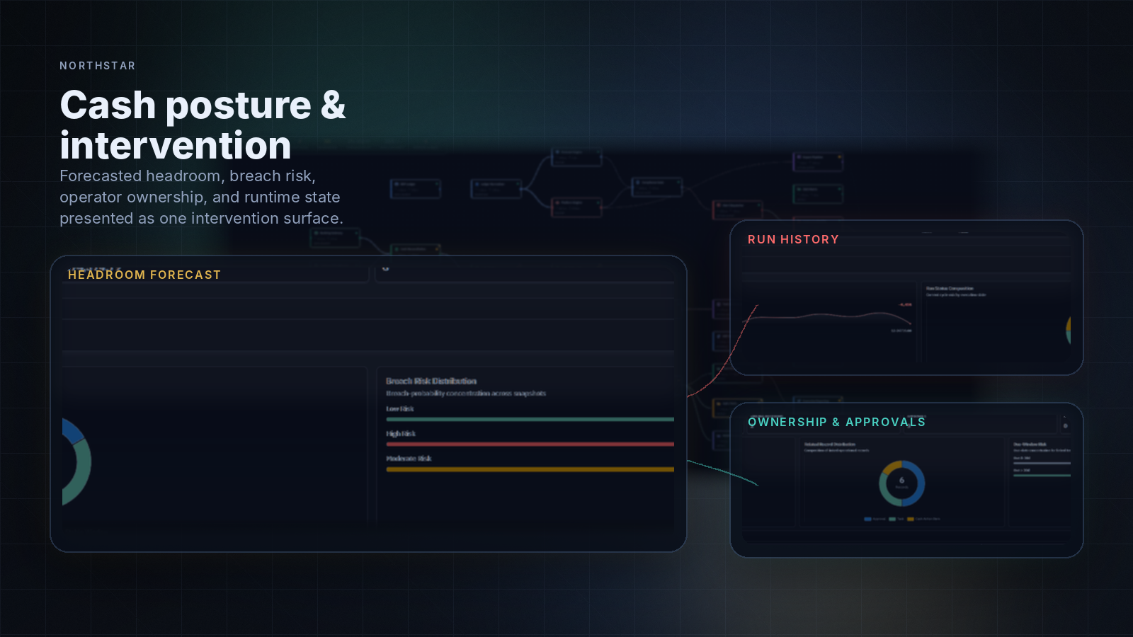 Northstar makes headroom posture, timing risk, and mitigation path visible in one view so liquidity pressure becomes an owned action rather than a late finance warning.