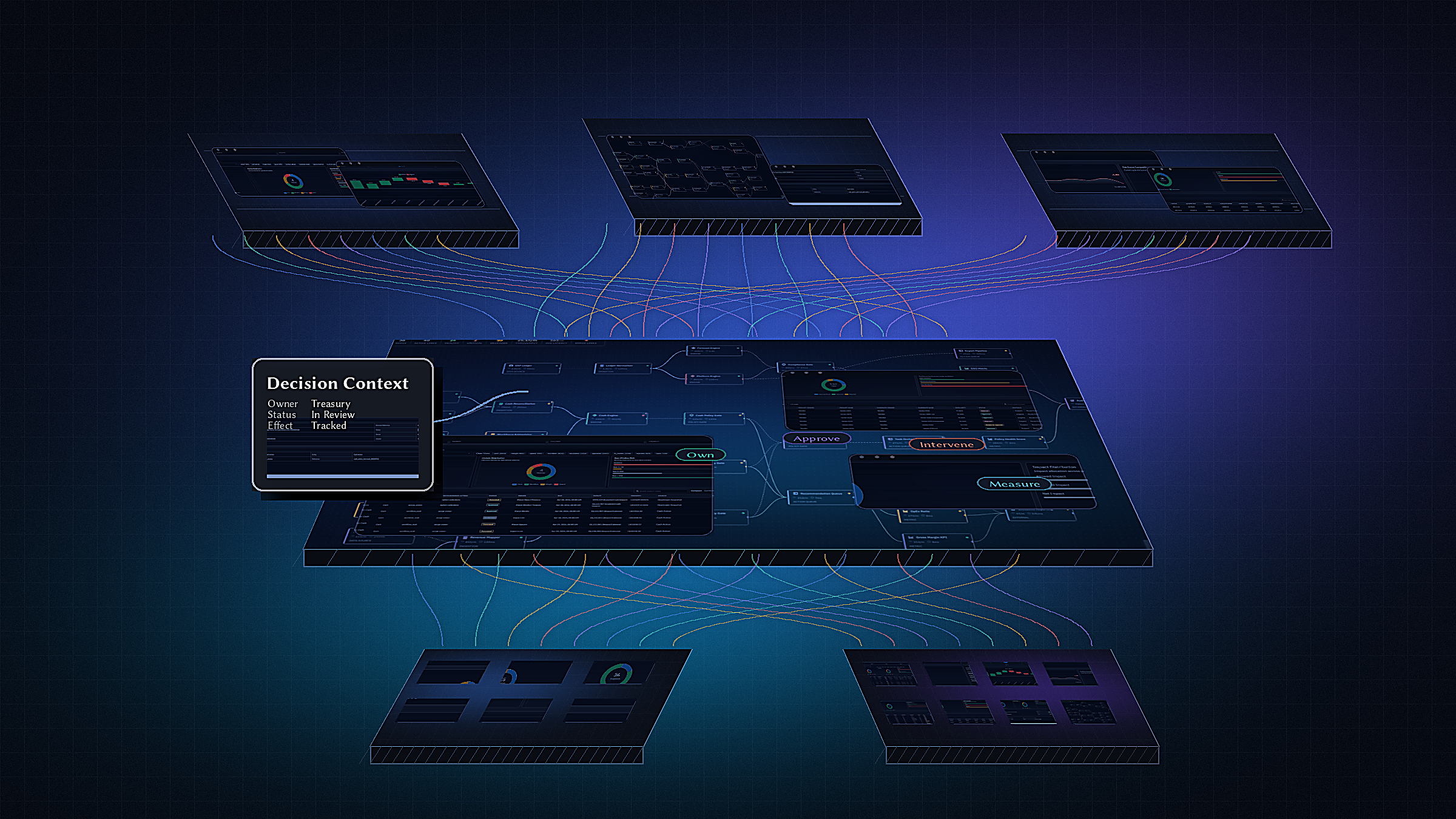 Finance pressure, governed decisions, and measured effect in one line of sight.